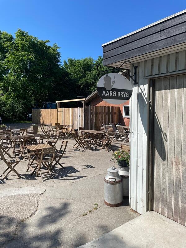 I vores gårdhave har vi plads til ca. 150 personer samt scene når vi gæstes af forskellige musikere i løbet af sommeren.